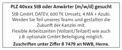 PLZ 40xxx StB oder Anwärter (m/w/d) gesucht