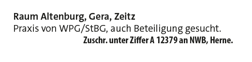 Zuschr. unter Ziffer A 12379 an NWB, Herne.