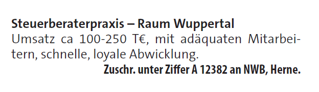 Zuschr. unter Ziffer A 12382 an NWB, Herne.