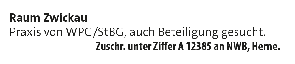 Zuschr. unter Ziffer A 12385 an NWB, Herne.