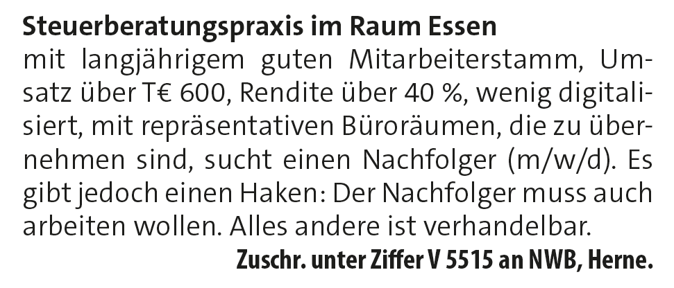 Nachfolger für Steuerberaterpraxis gesucht (2276)