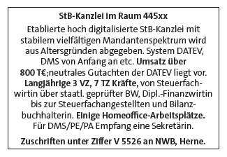 Etablierte hoch digitalisierte StB-Kanzlei mit