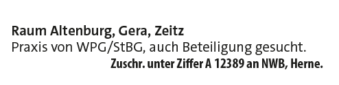 Praxis von WPG/StBG, auch Beteiligung gesucht.