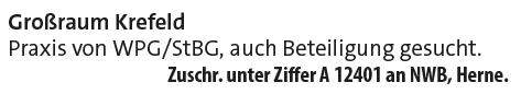 Zuschr. unter Ziffer A 12401 an NWB, Herne.
