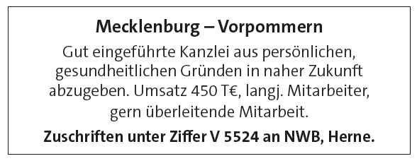 Zuschriften unter Ziffer V 5524 an NWB, Herne.