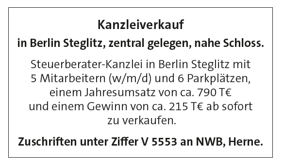 Steuerberater-Kanzlei in Berlin Steglitz zu verkaufen (2321)