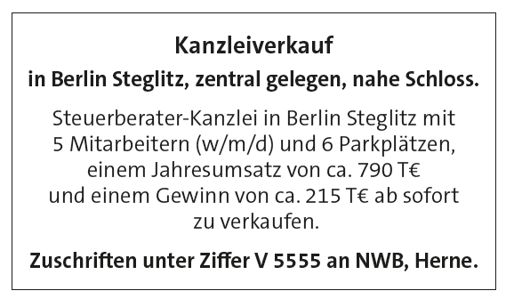 Zuschriften unter Ziffer V 5555 an NWB, Herne.